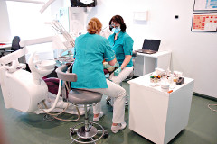 Для пломбированя зубов используем материалы фирм 3М, Не Возможно лечение корневых каналов и дигитальный рентгенный снимок. Гигиенист использует ультразвук или мануальный метод снятия зубного камня.